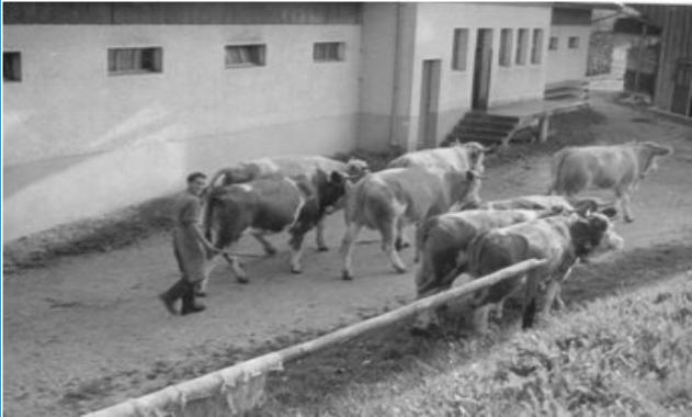 Strafgefangene aus dem Zuchthaus Regensdorf im Kanton Zürich, die zur Wiedereingliederung dort versorgt wurden. Es war ein einfaches Bauernhaus